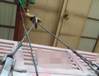 其實在室內檢修房上安裝鋼絲繩電動葫蘆并非不可,但是其噸位必須在10噸以上,并且僅僅適用于拆裝后輪時使用,使用過程中除了用了吊鉤鉤起車身外,還需要有兩個用一截短鋼絲繩連在一起的專用鐵鉤,形成穩定的三角形結構,以免貨箱與車架分離。同時必須在車架下面做好保護措施,有的人用鋼質馬凳輔助支撐車身,防患于未然,